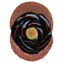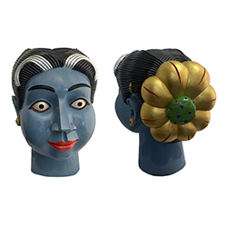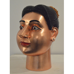 His sculptural forms are iconic which mostly represent Indian women with strikingly bold features with wide eyes and bodily forms. The “head” series usually are monumental and colourful which captivate the feminine beauty that has both traditional and contemporary Indian cultural appeal.